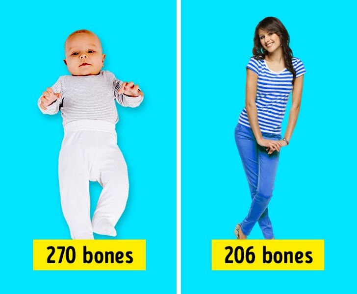 15. Një foshnjë e porsalindur ka më shumë se 270 kocka. Gjatë procesit të rritjes, disa nga këto kocka bashkohen me njëra-tjetrën. Ka rreth 206 kocka në trupin e një të rrituri.