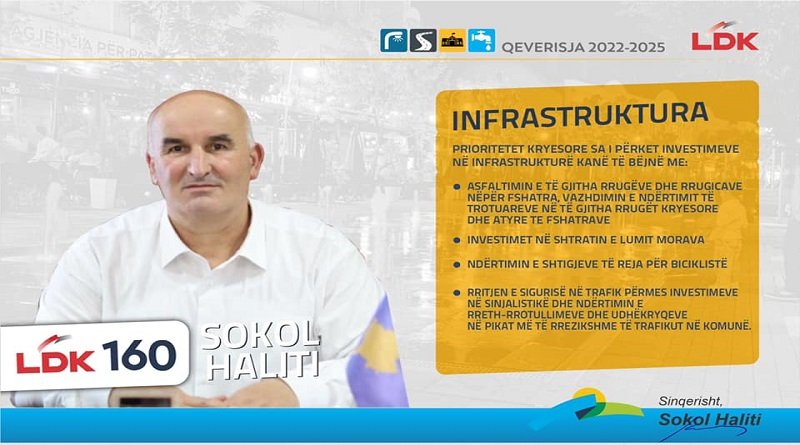 “Para jush jam krenar të prezantoj pikat kryesore të mandatit qeverisës që kanë të bëjnë me infrastrukturën, ku përfshihet asfaltimi i të gjitha rrugëve, sidomos ato në fshatra dhe vazhdimi i ndërtimit të trotuareve’, ka thënë Haliti.