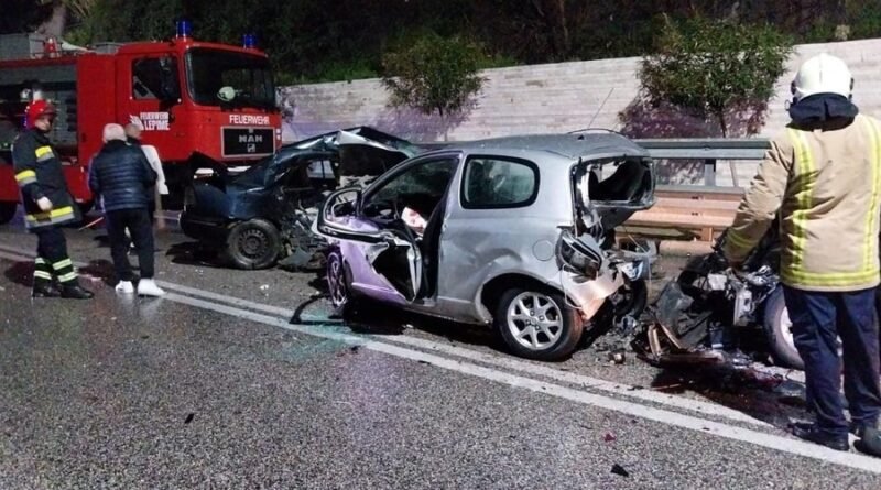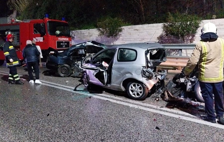 Një automjet, duke ardhur në drejtimin jugor, ka humbur kontrollin dhe si pasojë është përplasur me dy automjete të tjera që qarkullonin në drejtim të kundërt.