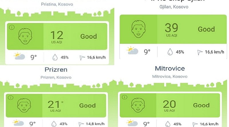 Sot, tabelat që tregojnë cilësinë e ajrit kanë ngjyrë të gjelbër në të gjitha qytetet: Prishtinë, Gjilan, Prizren, Mitrovicë.