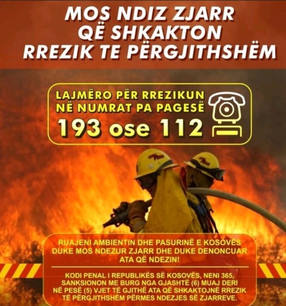 Policia e Kosovës do të ndërmarr masa ligjore ndaj të gjithë personave që ndezin zjarre duke shkaktuar rrezik të përgjithshëm.