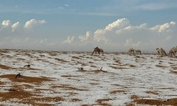Pas reshjeve të mëdha të shiut, disa pjesë të Arabisë Saudite u mbuluan nga një batanije e hollë dëbore.
