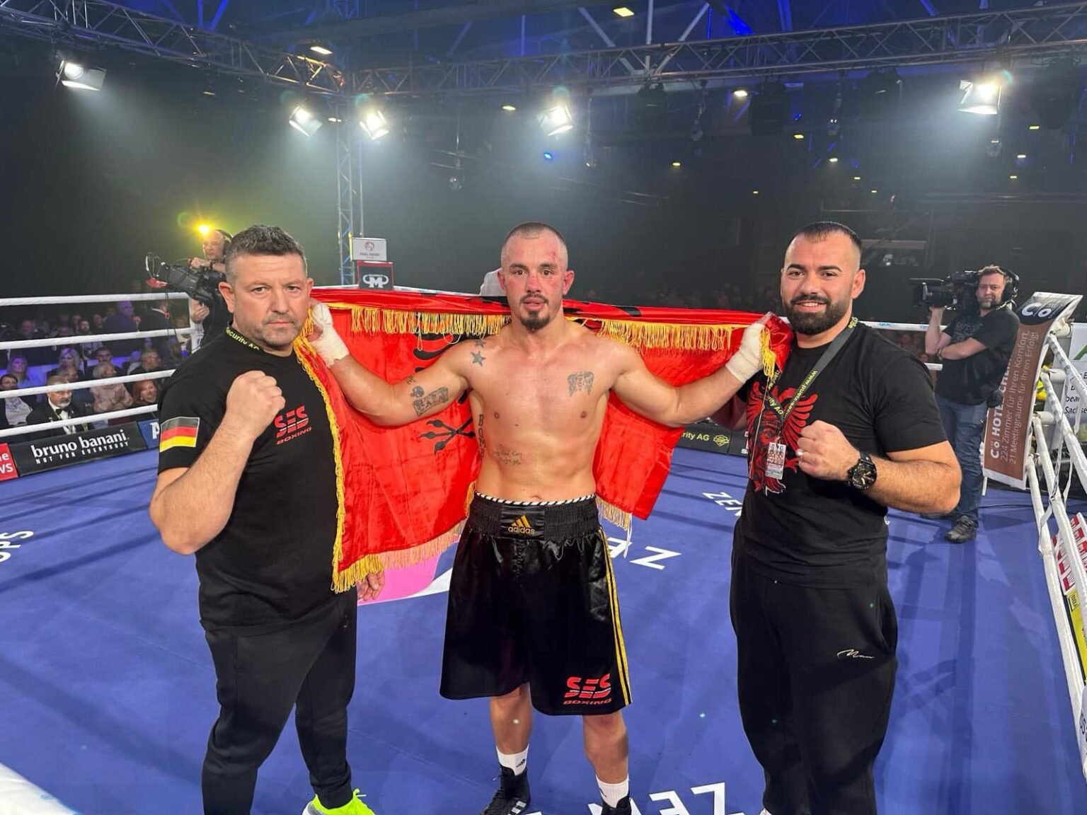 Armend Xhoxhaj e mund boksierin serb, feston me flamurin kuqezi