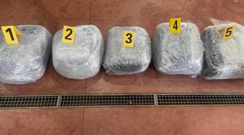 - Pesë (5) paketime të mbushura me substancë të dyshuar narkotike e llojit Marihuanë me peshë 600 Kilogram ( Pesëdhjetë kilogram e 600 gram).