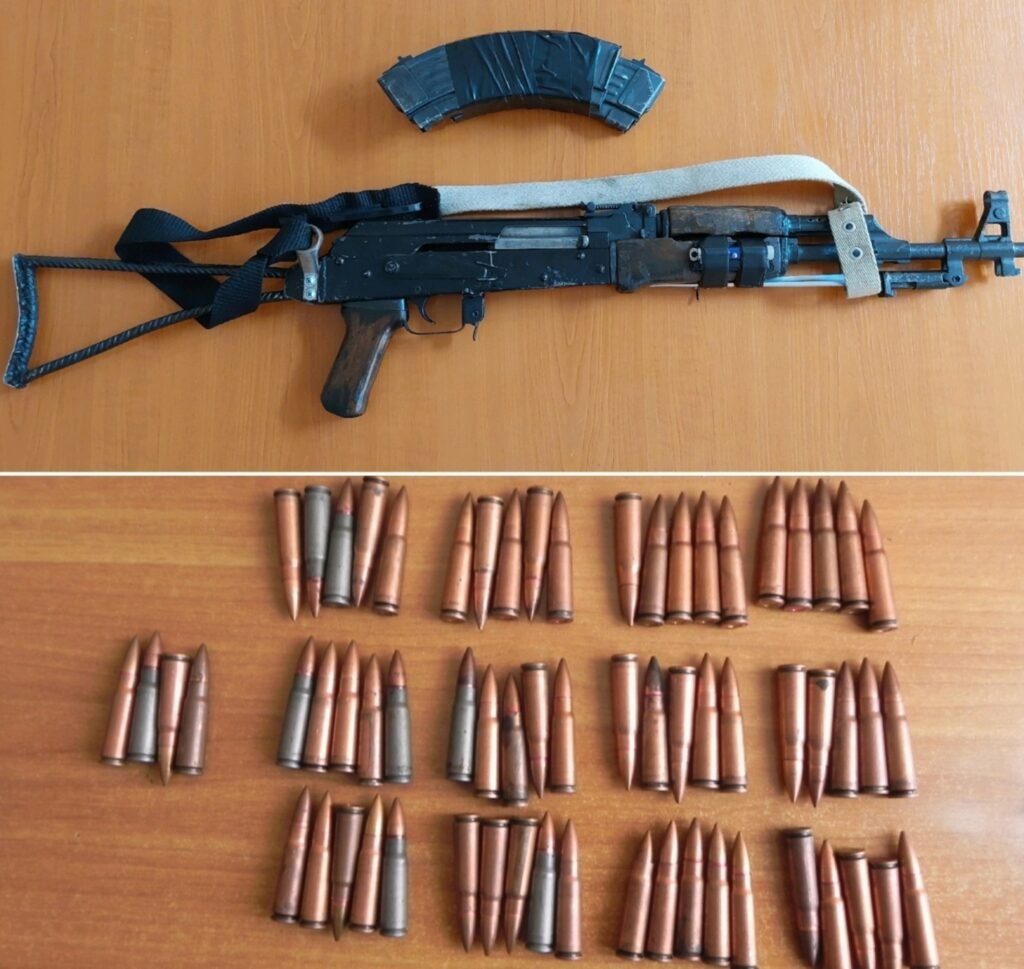 Gjatë kontrollit nga ana e zyrtarëve policorē janë gjetur dhe konfiskuar si dëshmi për gjykatën: një (1) armë automatike AK/47, dy (2) karikatorë dhe gjashtëdhjetë e katër (64) copë fishekë të kalibrit 7.62mm.