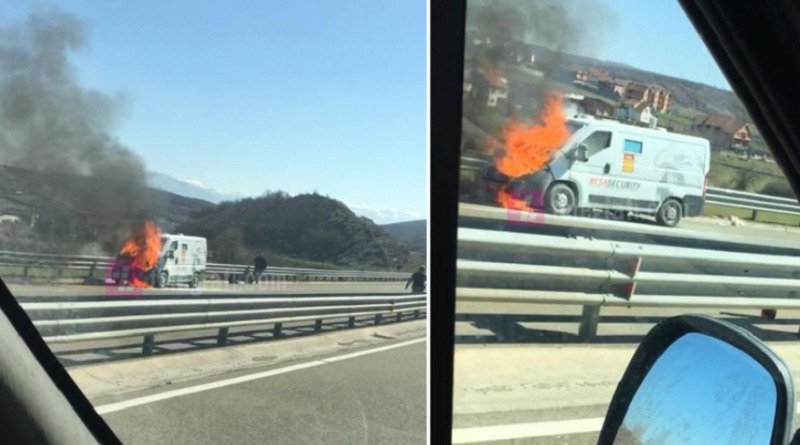 Një kombi i kompanisë së sigurimeve “Besa Security”, ka marrë flakë në autostradën Prishtinë-Prizren, afërsisht në Malishevë mesditën e së mërkurës.
