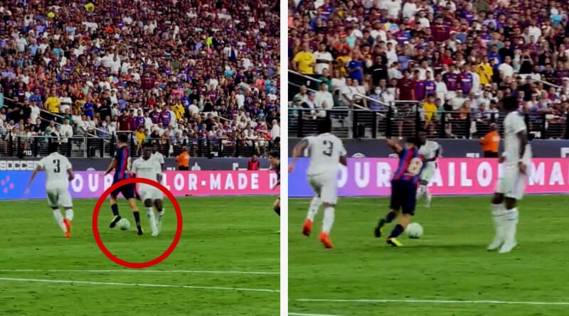 Në një video të publikuar nga Barcelona në “Twitter”, shihet si Pedri ia fut topin mes këmbëve transferimit më të shtrenjtë të Real Madridit gjatë afatit kalimtar veror, Tchouameni.