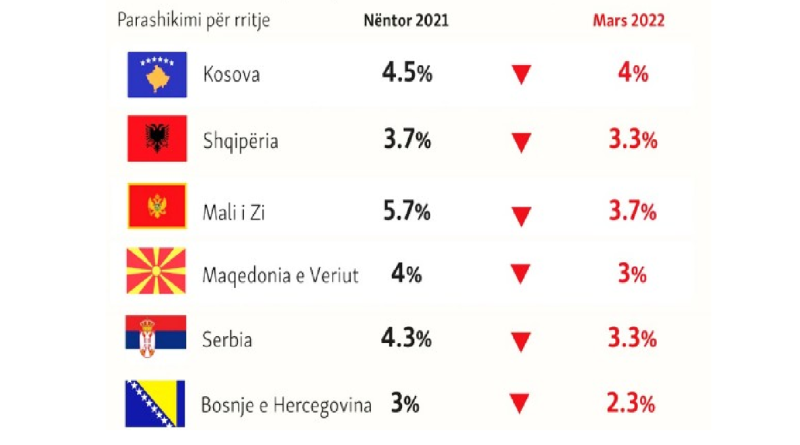 Parashikimi i rritjes ekonomike të bankës për 2022 për rajonin e Ballkanit Perëndimor u ul me 0.9 pikë përqindjeje në 3.2 për qind.