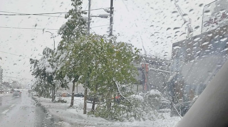 Ky keqësim i hershëm i motit, me rënie të madhe temperaturash, eshte përcjellë gjatë natës edhe me erë, e cila siç po shihet në foto, ka thyer disa drurë dekorativë përgjatë rrugës Gjilan-Bujanoc, në segmentin përballë Agmisë.