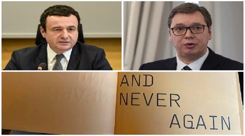 Kreu i qeverisë së Kosovës deklaron përmes një postimi në rrjetet sociale se i ofroi Vuçiç-it tri libra që flasin për gratë e përdhunuara gjatë luftës, listën e 1.113 fëmijëve të vrarë dhe “Dosjen Britanike”, për dëbimin e shqiptarëve nga Sanxhaku i Nishit.