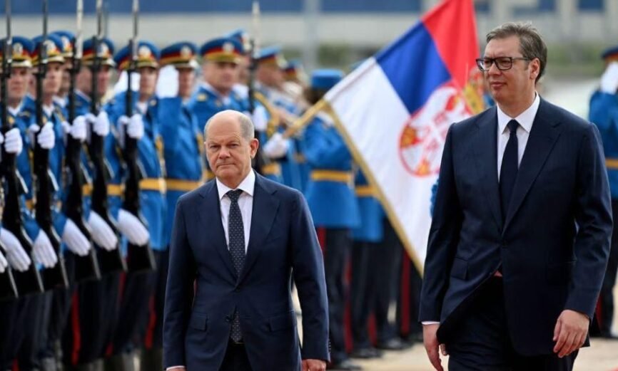 Olaf Scholz, kancelar i Gjermanisë, po qëndron në një vizitë në Serbi, ku është pritur me nderime të larta që në aeroportin “Nikola Tesla” të Beogradit nga ana e presidentit serb Aleksandar Vuçiq. Këto dy vende, pra Gjermania (në emër të BE-së) dhe Serbia, e kanë nënshkruar edhe një memorandum në lidhje me “një partneritet strategjik për lëndët e para të qëndrueshme”. Kjo vizitë është komentuar, dorën në zemër me tone pesimiste, edhe në Kosovë.