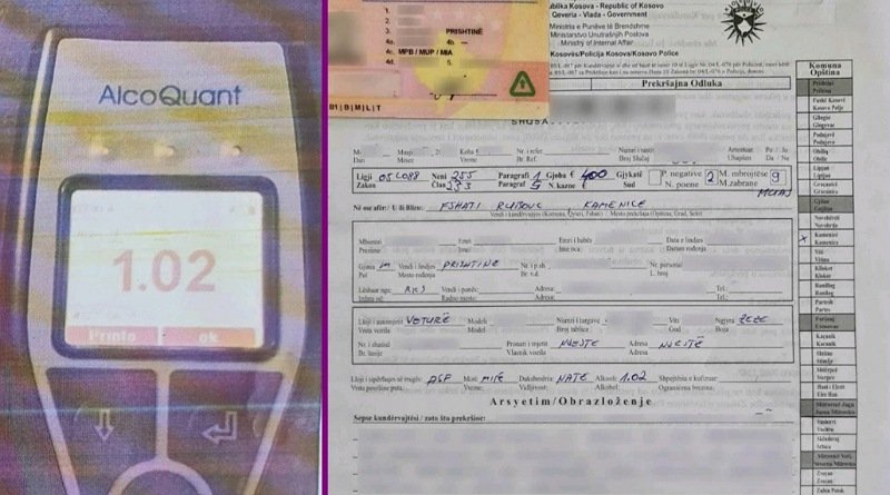 Gjatë kontrollit të dokumenteve është dyshuar se vozitësi mundë të jetë nën ndikim të alkoolit. Të njëjtit pasi që i është matur alkooli me alkool test ka rezultuar se ka qenë nën ndikim të alkoolit me 1.02 pronila.