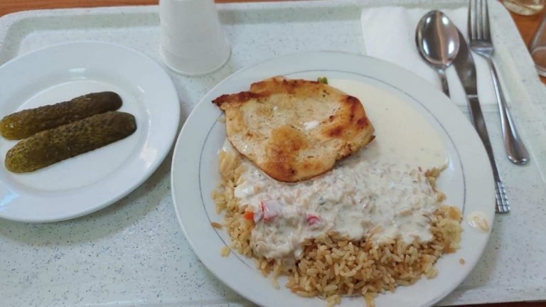 Në vaktin e drekës nuk kanë qenë të gjitha produktet e kompletuara të servimit duke filluar nga supa, sallata, një pemë apo edhe pije të gazuara. Pjata e sotit ka qenë me zgjedhjen e oriz dhe sos, ose gullash dhe pomfrit.