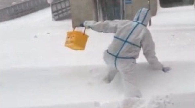Kjo foto ka prekur gjithë rrjetin online. Pavarësisht reshjeve të borës në Madrid, Spanjë, një infermier shihet se si çan rrugën për të dorëzuar vaksinën.