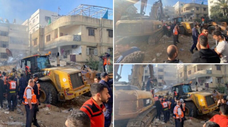 Përkthimi: Ekipi i shpëtimit ende në kërkim të personave të zhdukur në skenën e masakrës që ndodhi në rrugën al-Wehda në Qytetin e Gazës.
