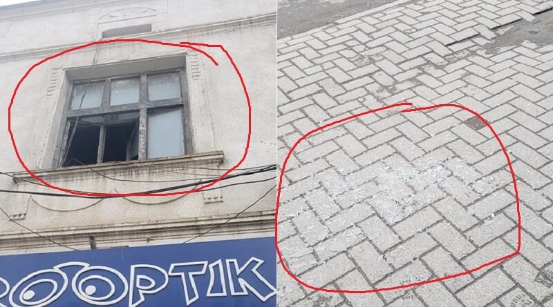 Kalimtarët e rastit kanë thënë se era e fuqishme ka përplasur dritaret e hapura dhe si pasojë xhamat janë thyer dhe kanë rënë në rrugë, ku përpak nuk ka pësuar një grua.