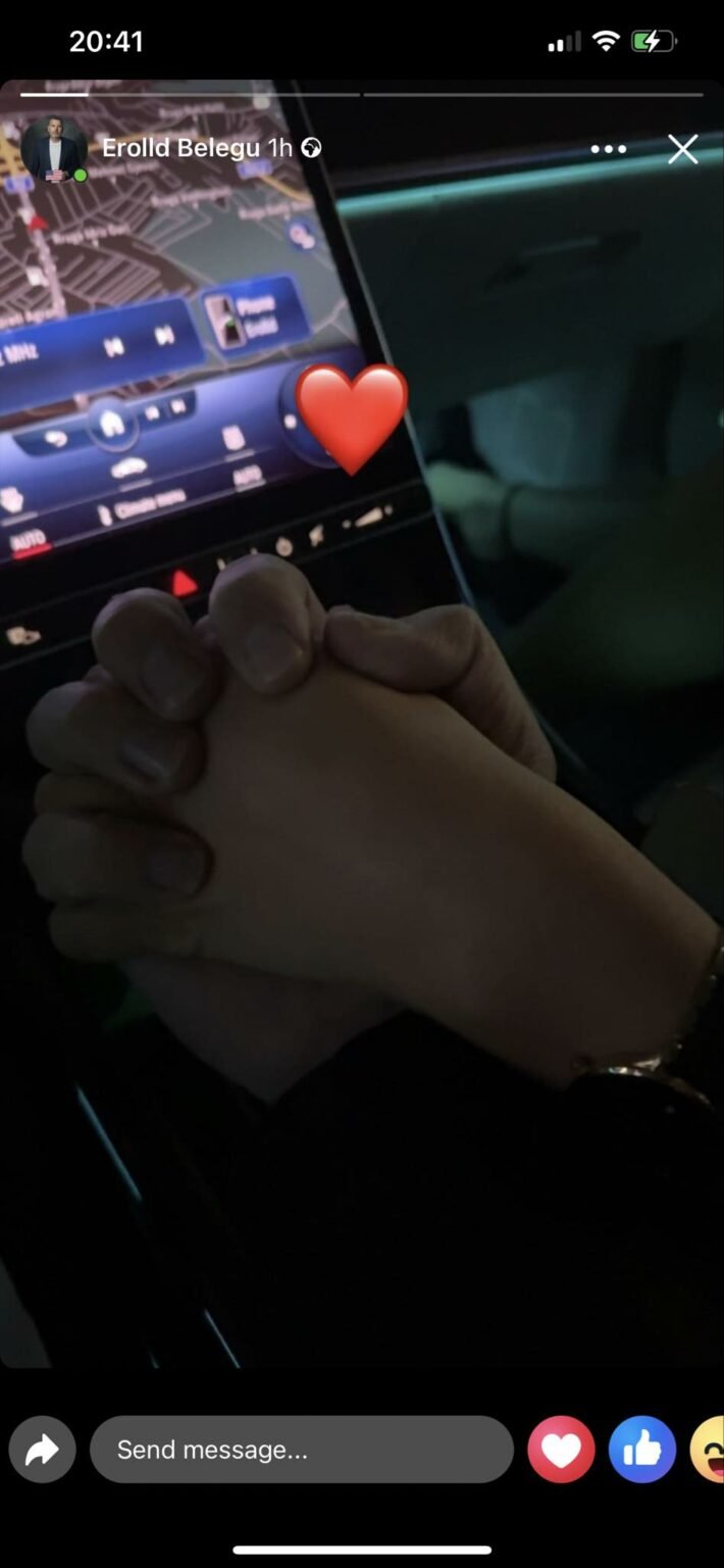 Fillimisht ai ka postuar një fotografi ku shihet dora e Diolës dhe e tij si të lidhur dhe mandej një fotografi tjetër ku Diola e përqafon atë derisa lart fotografisë shkruan: Thjesht Lumturi.
