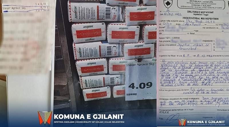 Inspektori i tregut në Gjilan ka gjobitur me 400 euro një market për shkak të mospërputhjes së çmimit të sheqerit.