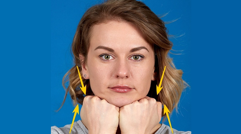 Për këtë ushtrim, ju duhet t’i formoni duart grushta dhe t’i vendosni direkt nën mjekrën tuaj. Pastaj filloni të lëvizni nofullën e poshtme pak poshtë në grushtat tuaj dhe tendosni muskujt ndërsa bëni rezistencë me grushta.