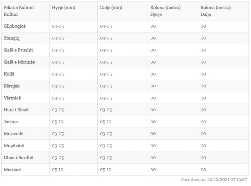 Sipas të dhënave të Ministrisë së Punëve të brendshme në asnjërën prej 12 pikë kalimeve kufitare pritjet nuk shkojnë më shumë se 5 minuta.