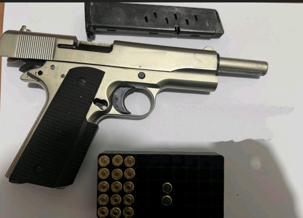 Gjatë kontrollit të automjetit nga ana e zyrtarëve policor është gjetur dhe konfiskuar një (1) armë e llojit Colt Governiment e kalibrit 9mm, pesëmbëdhjetë (15) fishekë dhe dy (2) gëzhoja të cilat do të përdorën dëshmi për gjykatë.