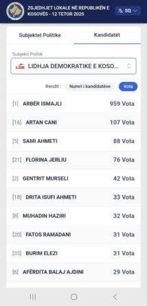 Të fundit KQZ publikon rezultatet, kjo është dhjetëshja më e votuar e LDK-së për Kuvendin e Gjilanit 14/10/2025 - 18:1014/10/2025 mediafokus Tashmë ka filluar publikimi i rezultateve për asamble komunale, ku në komunën e Gjilanit janë numëruar 15.04 për qind e votave.Kjo është dhjetëshja më e votuar e LDK-së për Kuvendin e Gjilanit nga numërimi i deritanishëm: NDAJENI KËTË ME TË TJERËT: Klikoni që ta ndani me të tjerët në Facebook (Hapet në një dritare të re) Facebook Klikoni për ta ndarë me të tjerët në WhatsApp (Hapet në një dritare të re) WhatsApp