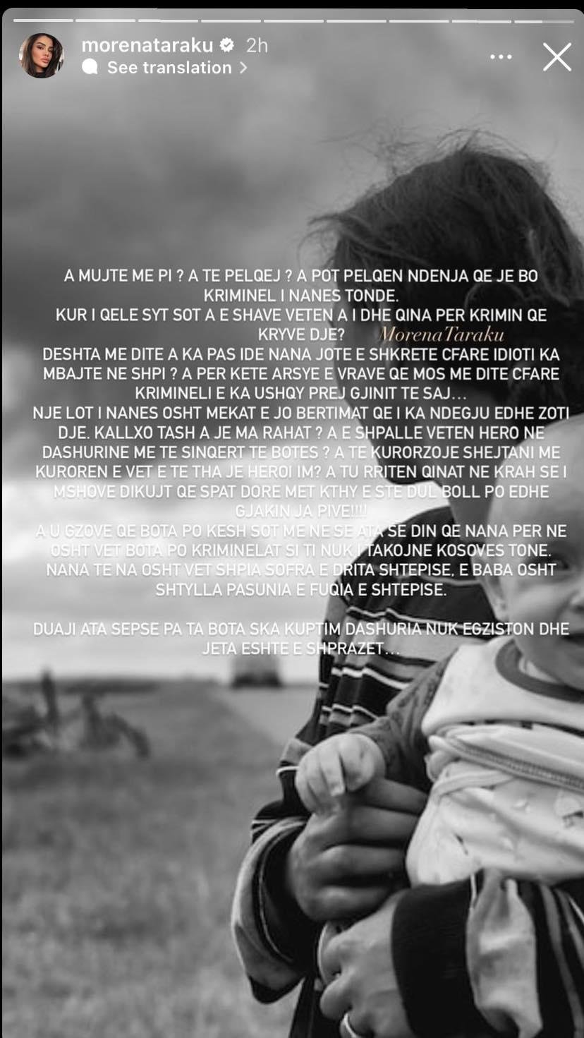 Këngëtarja Morena Taraku ka bërë një reagim në storien e saj në Instagram për ngjarjen e rëndë në Pejë, ku djali vrau nënën.