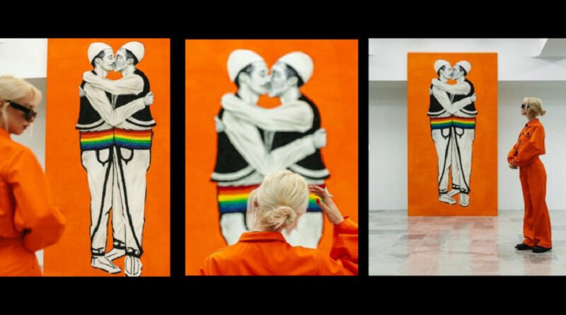 Sipas autores që prezantohet me emrin e artit “orangegirl”, vepra e titulluar Kiss (Puthja) përkufizohet si: prekja me buzë në shenjë të shprehjes së dashurisë, rrespektit apo përshëndetjes. Dhe më poshtë sqarimi i saj për veprën kontroverse: