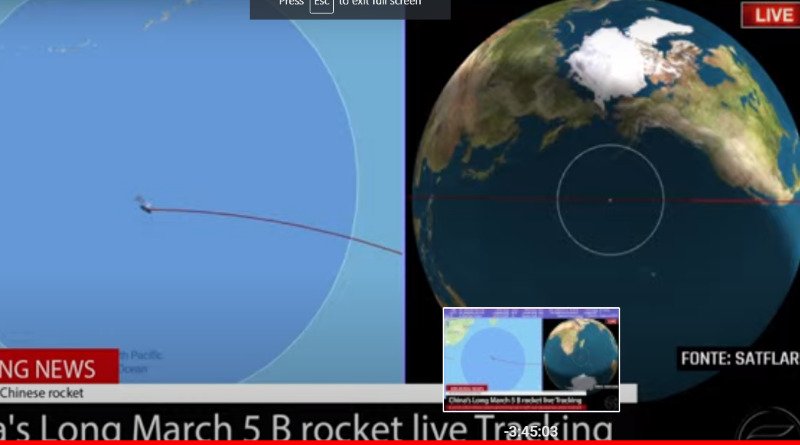 Raketa Long March 5B u nis nga ishulli kinez i Hainan më 29 prill dhe transportonte modulin Tianhe, i cili kishte furnizime për ekuipazhin kinez në stacionin hapësinor dhe objekti 18 tonësh është një nga më të mëdhenjtë në dekada që do të realizojë një hyrje të pa drejtuar në atmosferë.