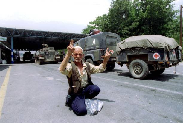 Emocion të tillë kishte edhe një i moshuar i cili ishte përkulur dhe kishte ngritur lartë dy gishta që simbolizojnë fitoren, posa kishte hyrë në Kosovë.