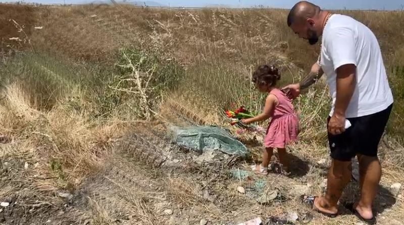 Moment prekës: 3-vjeçarja vendos lule në vendin ku humbën jetën dy vajzat dhe prindërit e tyre