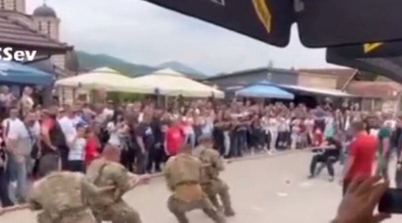 Në Komunën e Leposaviqit ushtarët e KFOR-it kanë luajtur sot lojën e tërheqjes së litarit bashkë me serbët lokalë të cilët janë duke protestuar tash e sa ditë para objektit të Komunës.