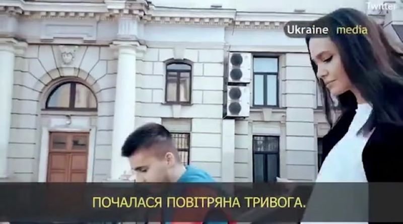 Në video, një sirenë e sulmit ajror mund të dëgjohet në prapavijë, ndërsa aktorja e filmit “Mr & Mrs Smith” nxiton drejt vendit të sigurt, raporton media britanike Express.co.uk.
