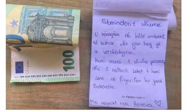 Klienti ka lënë pagesën 100 euro së bashku me një letër falënderimi për ambientin e këndshëm.