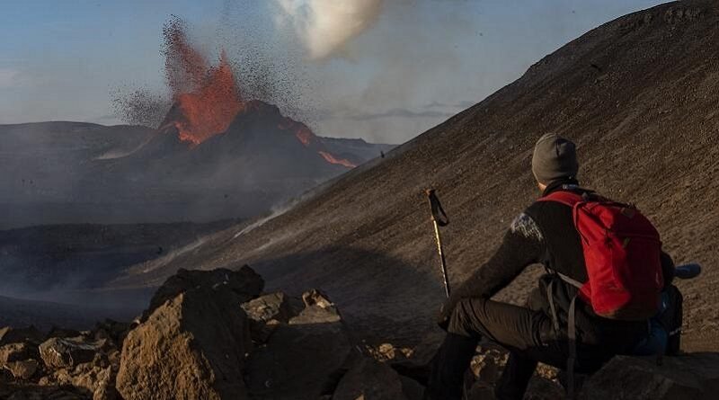 Shkëlqimi nga llava e nxehtë që del nga vullkani Fagradalsfjall mund të shihet nga periferia e kryeqytetit të Islandës, Reykjavík, që ndodhet 32 kilometra larg. Vetë Fagradalsfjall përbëhet nga fjalët Islandeze; “mali i luginës së bukur”.