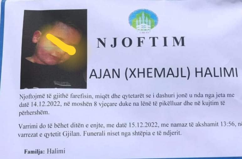 Ka ndërruar jetë në moshën 8-vjeçare, Ajan Halimi, nxënës i shkollës fillore ‘Selami Hallaqi’ në Gjilan.
