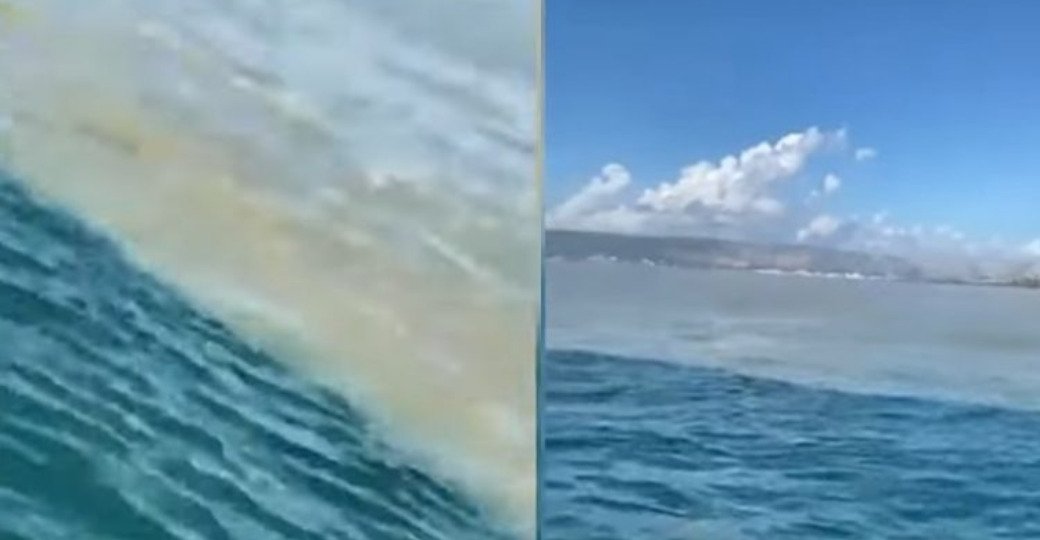 Në video duken dy ngjyra të ndryshme të detit përballe Shëngjinit. Në njërën anë është kaltërsia e këtij plazhi të bukur dhe në anën tjetër ngjyra gri që ngjan me rrjedhën e përrenjve. Kjo nuk është aspak rastësi, por një moment pas reshjeve intensive të shiut që ranë 24 orë më parë.