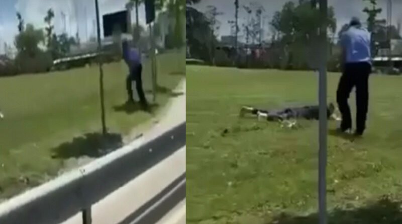Në pamje i dyshuari shihet këmbëzbathur teksa polici i drejtohet “përtoke”.