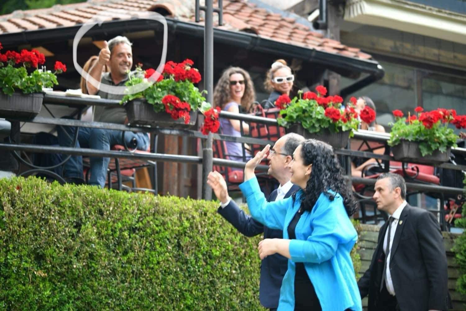 Qytetari teksa ishte i ulur në një lokal e ka përshëndetur Osmanin dhe Begajn me përshëndetjen e famshme të Thaçit me gisht, transmeton IN.