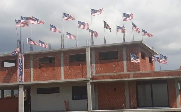Zor se ndonjëherë janë vendosur më shumë flamuj amerikanë në një shtëpi private, sikur në këtë objekt në ndërtim e sipër në fshatin Remnik.