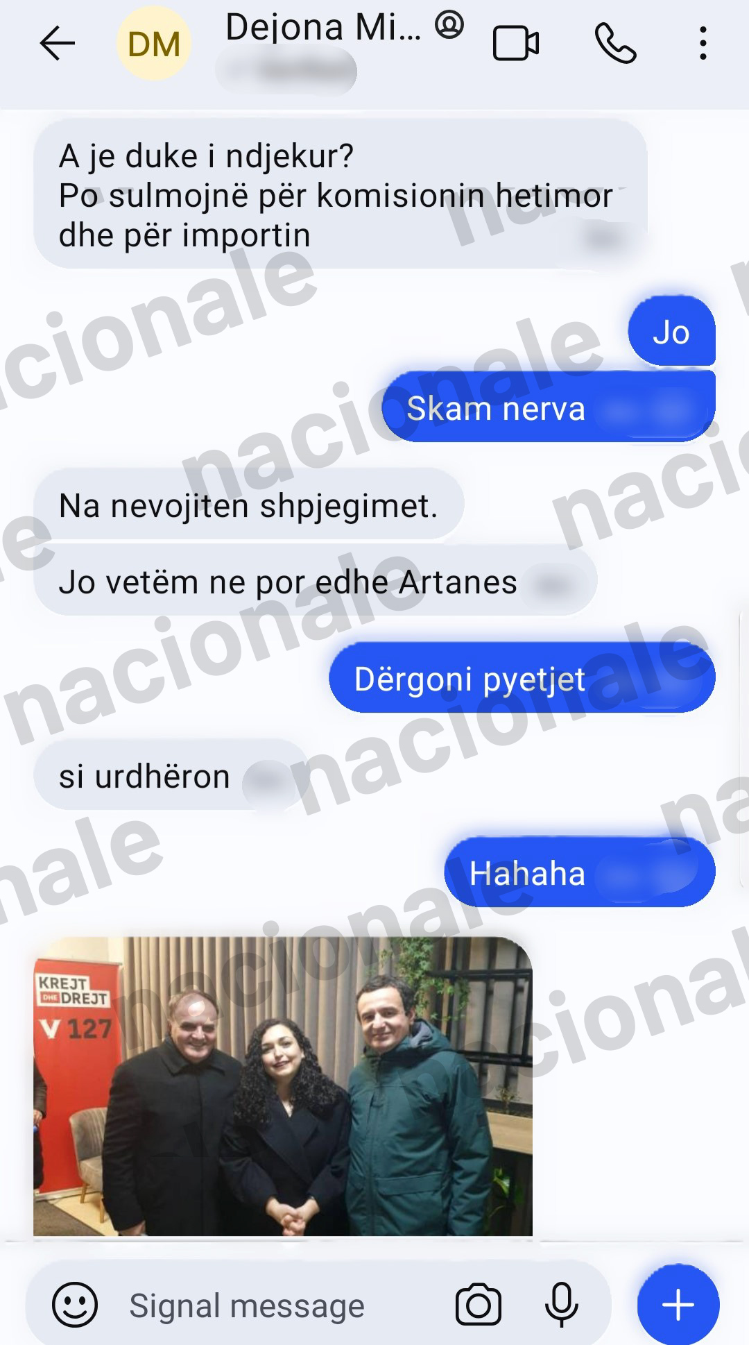 Platforma ‘Signal’ që njihet si më vështirë e përgjueshme, ka qenë forma më e shfrytëzuar për komunikim ndërmjet koordinatores së komiteteve në Vetëvendosje, Dejona Mihalit, dhe ish-kryeshefit të KEK-ut, Nagip Krasniqi.