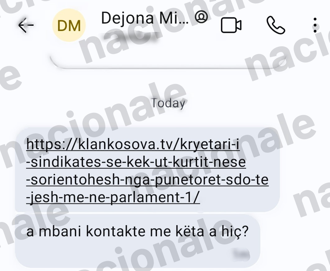 Mihali ia përcjell Krasniqit një link i cili flet për kryetarin e Sindikatës së KEK-ut. Aty, Mihali e pyet Nagip Krasniqin nëse kanë kontakte me këtë person.