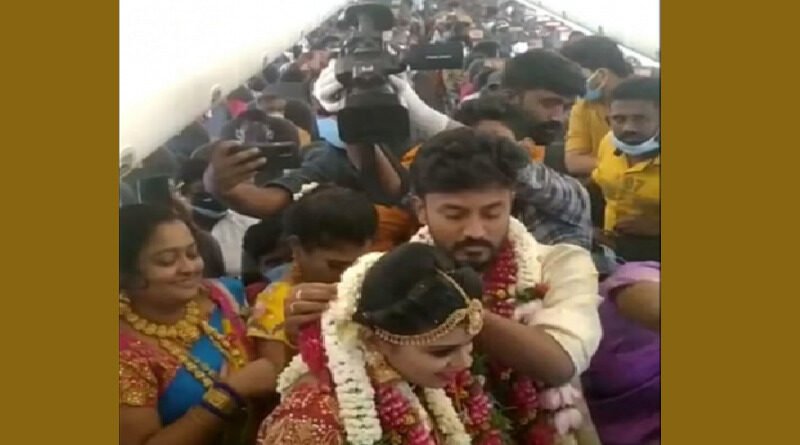 Çifti Rakesh dhe Dakshina u martuan në aeroplanin e kompanisë “SpiceJet” të dielën. Të pranishëm në aeroplan ishin edhe familjarët dhe miqtë. Ata rezervuan një fluturim “charter” nga qyteti Madurai i Indisë.