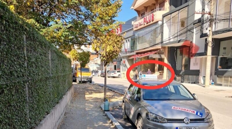 Pastaj është bërë ngushtimin e trotuareve për të krijuar hapësirë të parkingjeve për autoshkollën “Kushtrimi” pronë e drejtorit të shërbimeve publike Kushtrim Ibrahimi.