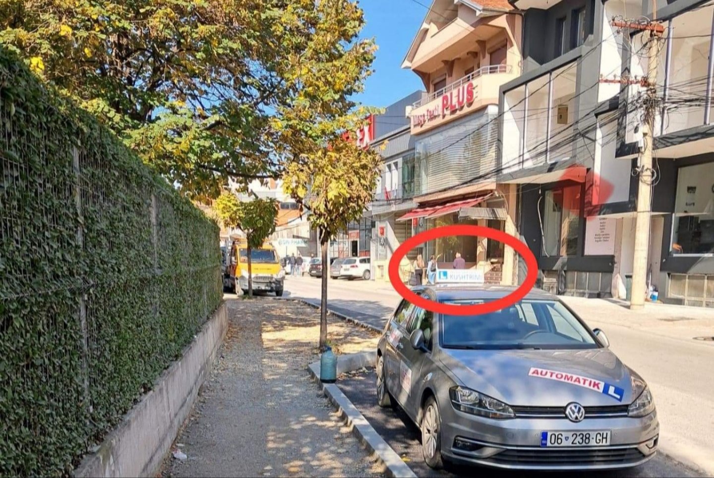 Pastaj është bërë ngushtimin e trotuareve për të krijuar hapësirë të parkingjeve për autoshkollën “Kushtrimi” pronë e drejtorit të shërbimeve publike Kushtrim Ibrahimi.