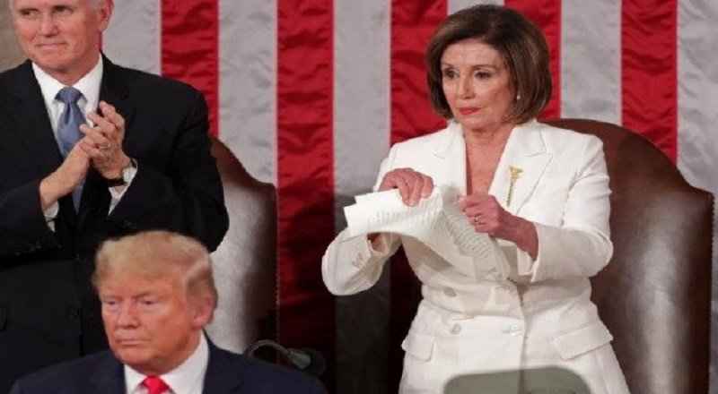 Kryetarja e Dhomës së Përfaqësuesve të Shteteve të Bashkuara, Nancy Pelosi, i ka shqyer letrat ku ishte shkruar fjalimi i presidentit Donald Trump në kohën kur kreu i Shtëpisë së Bardhë ishte duke e mbajtur fjalimin para anëtarëve të këtij institucioni.