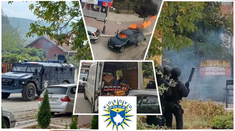 Në njoftimin e Policisë thuhet se përderisa në të gjitha rajonet tjera operacioni policor ka kaluar pa probleme, në Mitrovicë veriore grupe kriminale në mënyrë të organizuar janë grumbulluar, kanë krijuar bllokime të rrugëve me mjete të ndryshme transportuese, kanë përdorur bombola gazi, shok bomba, të shtëna me armë zjarri e granata dore, me qëllim të pengimit dhe sulmit ndaj zyrtarëve doganorë dhe policorë, të cilët kanë qenë në kryerje të detyrës zyrtare.