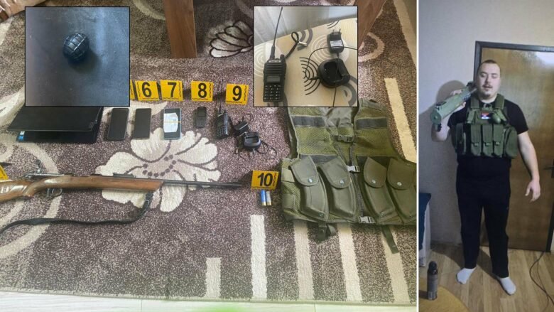 “Si rezultat i angazhimit dhe punës së zyrtarëve policor, gjatë kontrollit në shtëpinë e të dyshuarit mashkull kosovar janë gjetur dhe konfiskuar: Një armë e gjatë M-48, dy fishekë për pushkë gjuetie, katër telefona mobil, një Laptop, një Granad dore M-75 prodhim Jugosllav, një Radio lidhje “Baufeng” dhe një Jelek taktik. Ndërsa në shtëpinë e të dyshuarit tjetër po ashtu mashkull kosovar janë gjetur dhe sekuestruar: një pistoletë me karikator, “Zoraki 917-T”, një Kuti me katër (4) fishekë për pistoletë, një kapelë ma emblemë serbe dhe dy emblema me flamur serb”, thuhet në njoftimin e policisë.