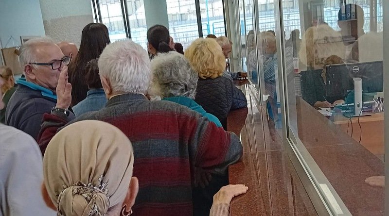 Kishte edhe invalid në karroca. Punonte vetëm një sportel dhe ishte rend i madh që rritej vazhdimisht.