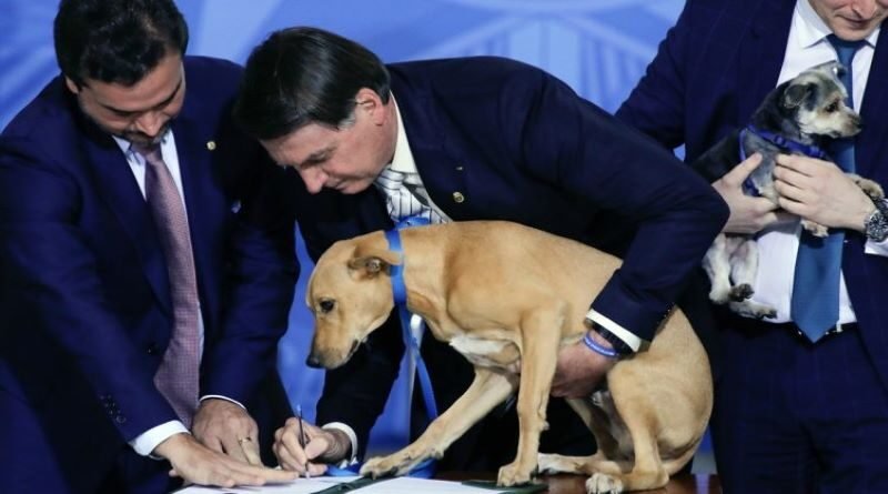 Qeni i tij ishte si dëshmitar për ligjin që hyn në fuqi. Madje, Bolsonaro u përpoq që qeni i tij të mbante stilolapsin me putrën e tij.